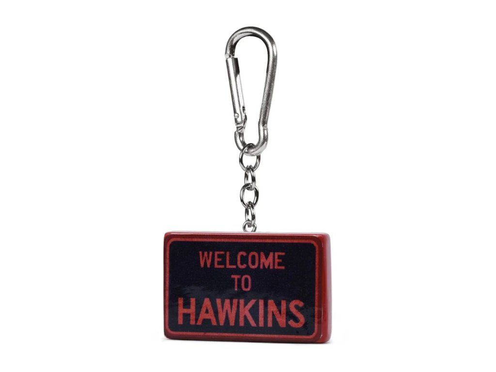 3D klíčenka Stranger Things Hawkins pro milovníky filmové předlohy. 3D klíčenka s karabinou pro zavěšení.
