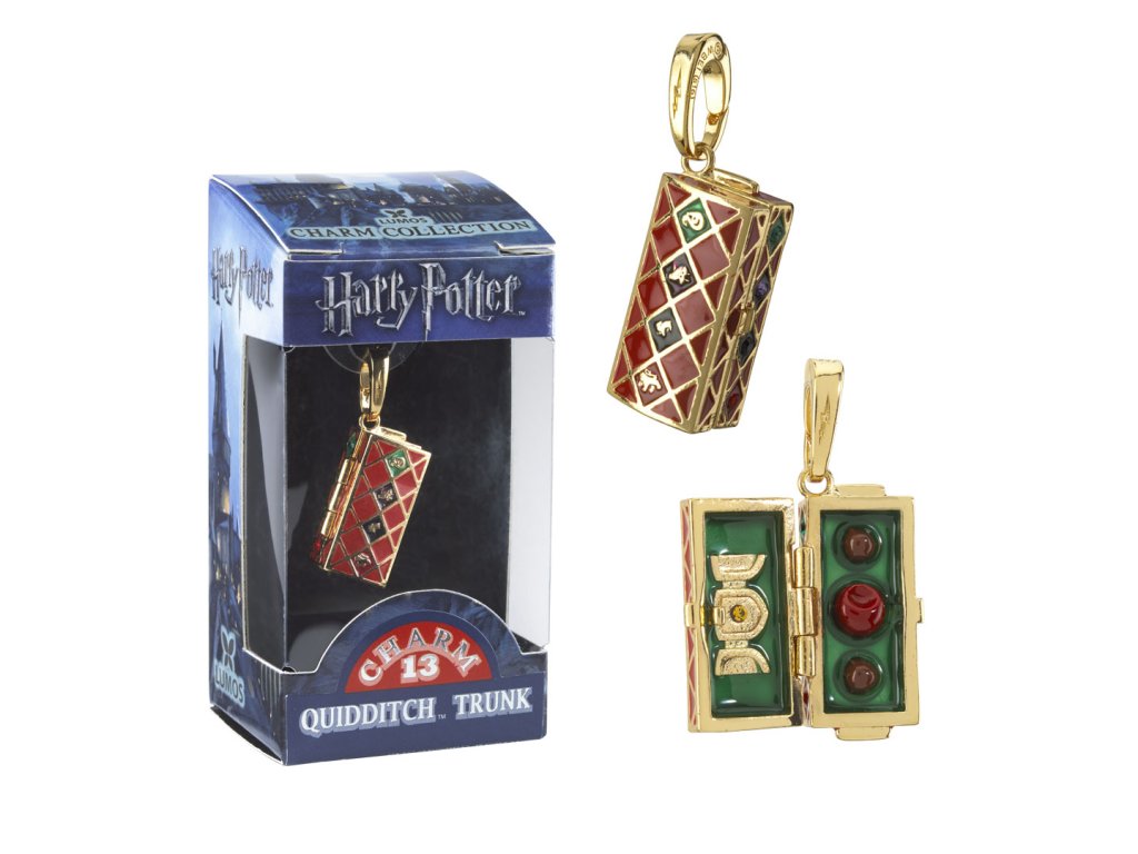 Doplňte svůj náramek Lumos tímto přívěskem ve tvaru famfrpálového kufru, podobného tomu, který používal Oliver Wood, když učil Harryho pravidla famfrpálu. Tento všestranný přívěsek je pozlacený a smaltovaný s karabinkou a lze jej připevnit k našim náramkům Lumos s přívěsky Harry Potter nebo k vašemu vlastnímu náhrdelníku či náramku. Přívěsky měří přibližně 2–3 cm. Spona měří přibližně 4 mm napříč a 9 mm podél vnitřního průměru.Doplňkové parametry