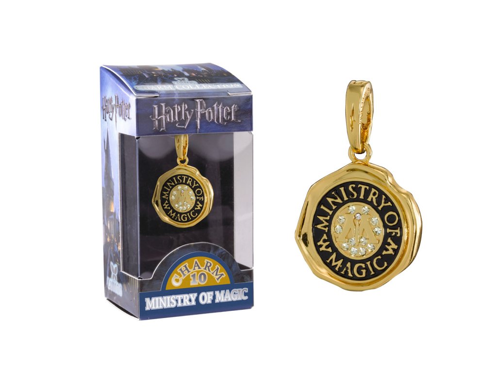 Doplňte svůj náramek Lumos tímto přívěskem ve tvaru symbolu Ministerstva kouzel. Tento všestranný přívěsek je pozlacený a smaltovaný drobnými drahokamy a má karabinku, a lze jej připevnit k našim náramkům Lumos s přívěsky Harry Potter nebo k vašemu vlastnímu náhrdelníku či náramku. Přívěsky měří přibližně 2–3 cm. Spona měří přibližně 4 mm napříč a 9 mm podél vnitřního průměru.