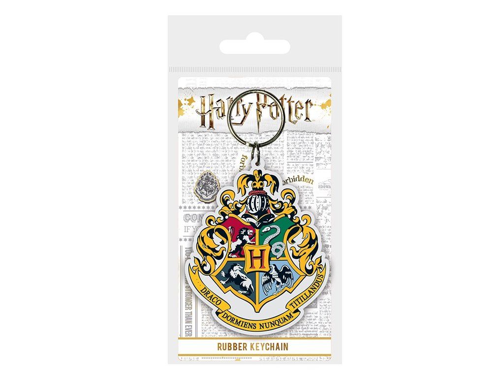 Silikonový přívěsek s kovovým kroužkem v designu bradavického znaku z knižní a filmové ságy Harry Potter.