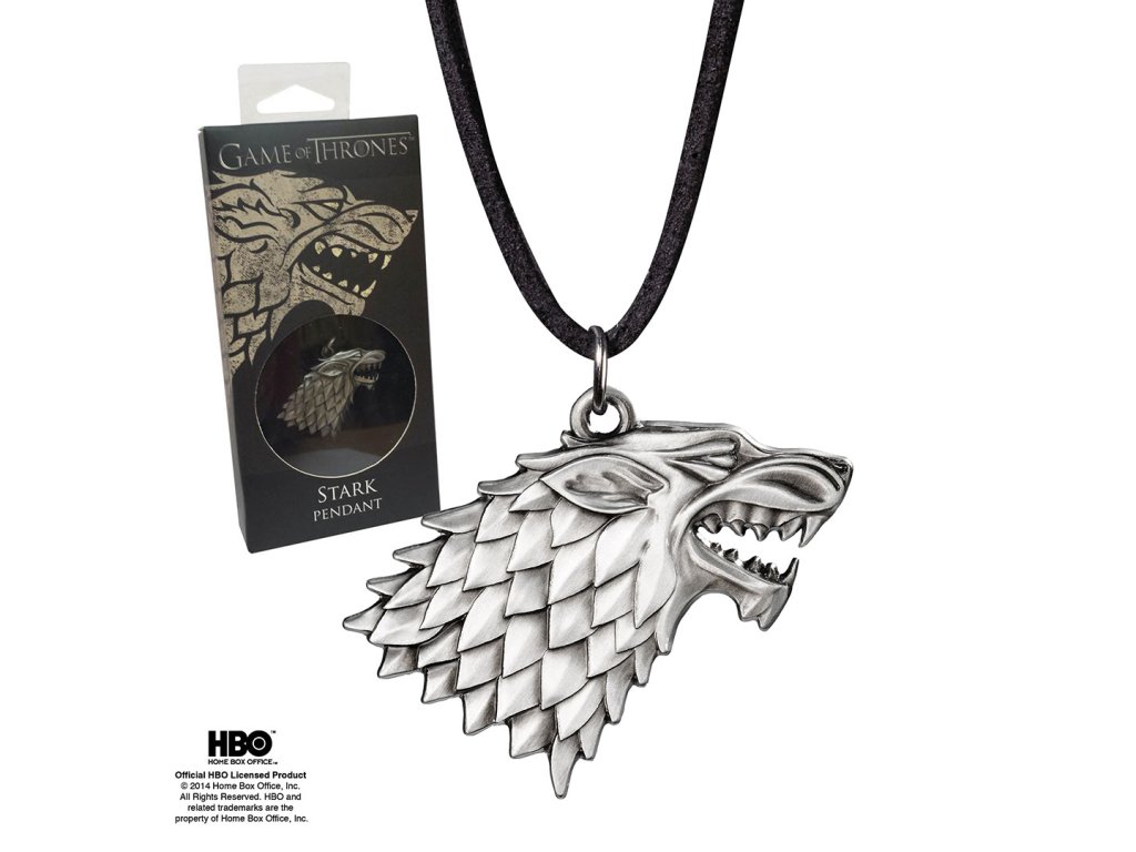 Nepotažený kovový přívěsek ve tvaru vlkodlaka o velikosti 13 cm, symbolizující Starkův rod. Přívěsek je zavěšen na šňůrce dlouhé 40 cm.Doplňkové parametry