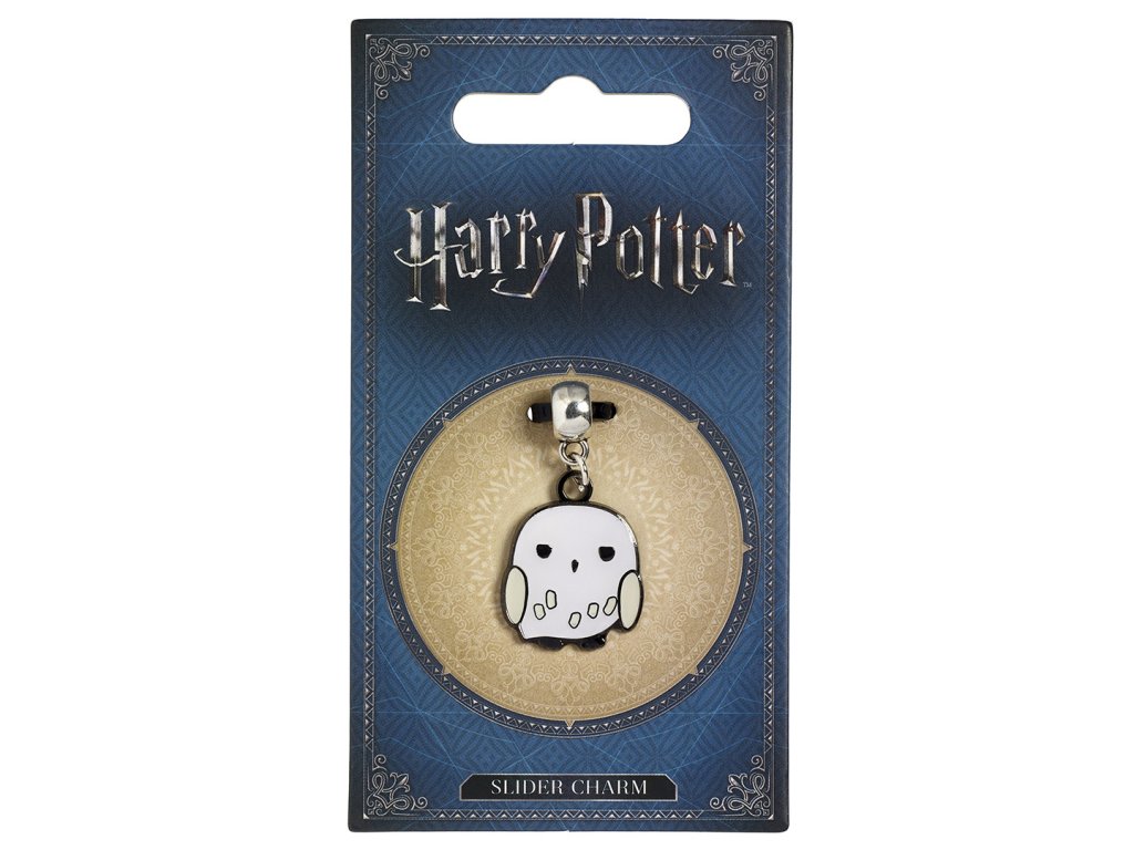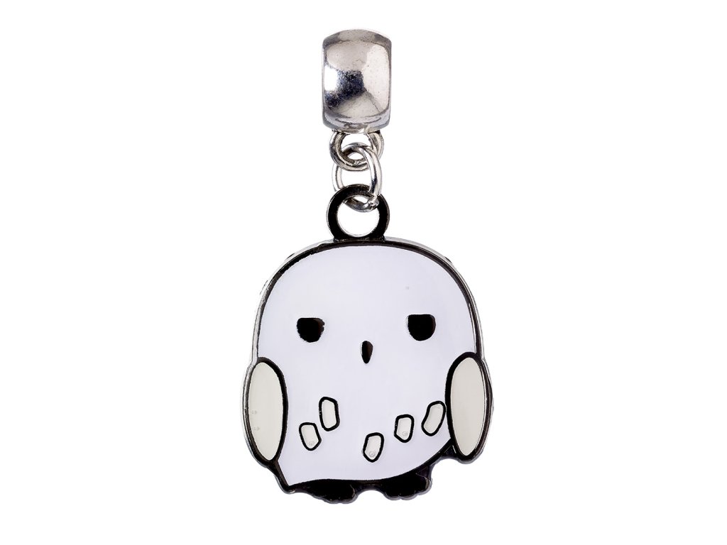 Postříbřený přívěsek s motivem sovy Hedviky z příběhů o kouzelnickém učni Harry Potterovi. Rozměry přívěsku jsou cca 2 × 2 cm. Oficiálně licencovaný produkt.