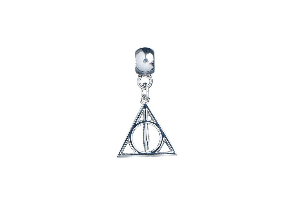 Přívěsek Relikvie smrti na postříbřeném třmenu. Symbolizuje tři nejmocnější magické předměty – Plášť neviditelnosti, Kámen vzkříšení a Bezovou hůlku. Měří přibližně 15 mm na výšku a 15 mm na šířku. Je kompatibilní s našimi dalšími přívěsky, náhrdelníky a náramky s motivem Harryho Pottera. Vhodný od 14 let.Doplňkové parametry