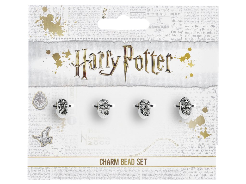 S touto jedinečnou sadou 4 šperků si můžete svévolně přizpůsobit nebo vylepšit své náhrdelníky či náramky. Sada přívěsků (slider charms) masek smrtijedů je také dobrý tip na dárek pro fanoušky a následovníky pána Zla.