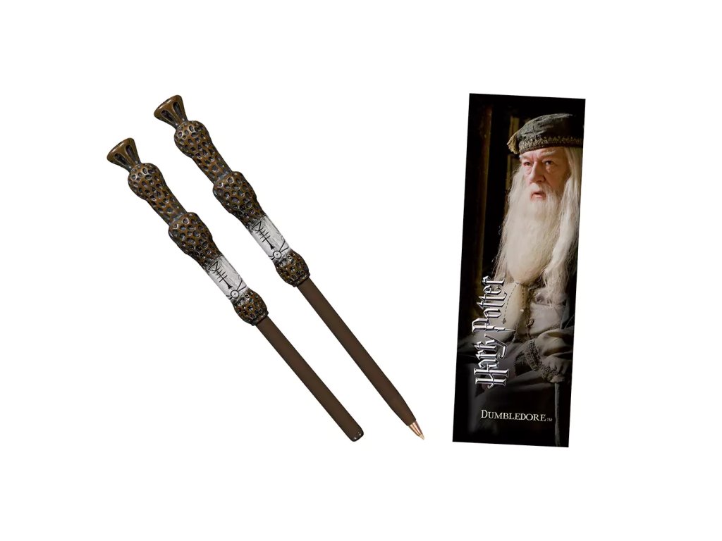 Propiska ve tvaru kouzelnické hůlkyAlbuse Brumbála s papírovou knižní záložkou s motivem této oblíbené postavy.