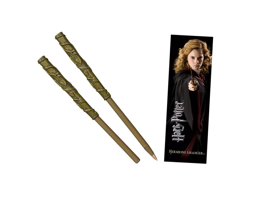 Propiska ve tvaru kouzelnické hůlky Hermiony Grangerové s papírovou knižní záložkou s motivem této oblíbené postavy.