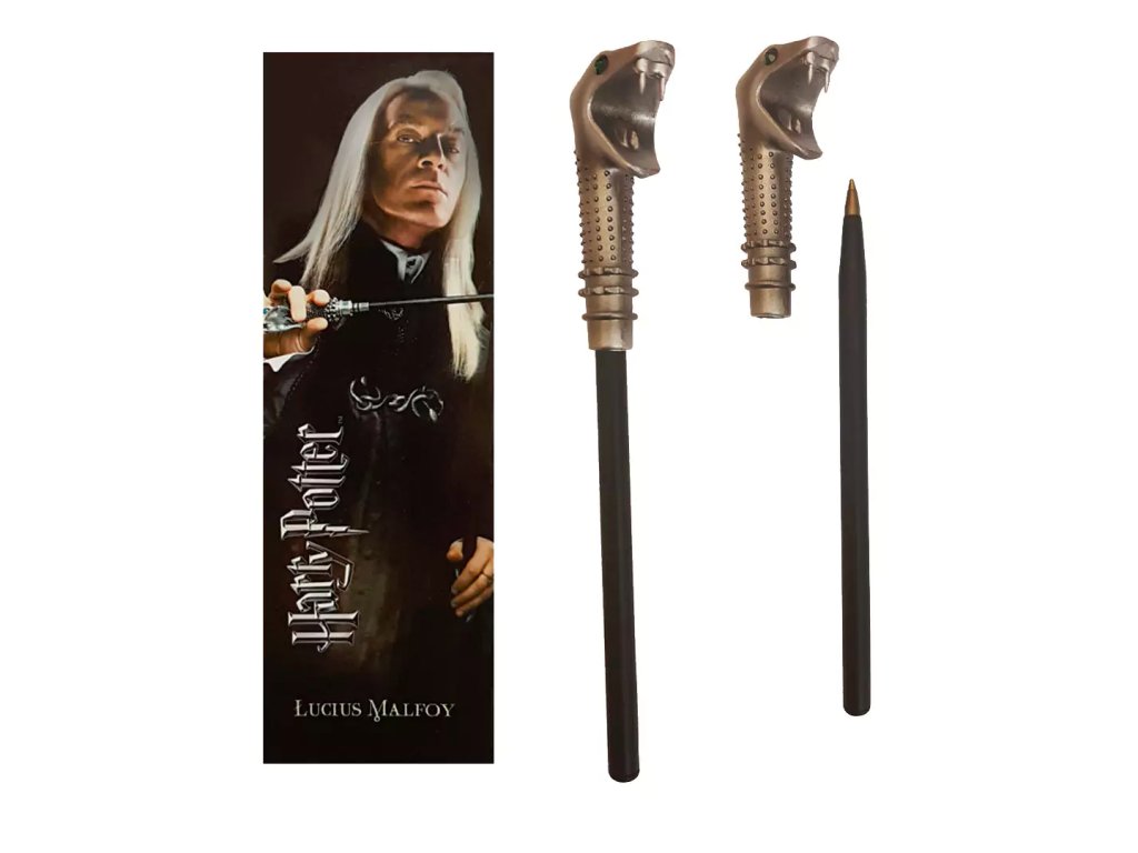 Propiska ve tvaru kouzelnické hůlky Luciuse Malfoya s papírovou knižní záložkou s motivem této oblíbené postavy.
