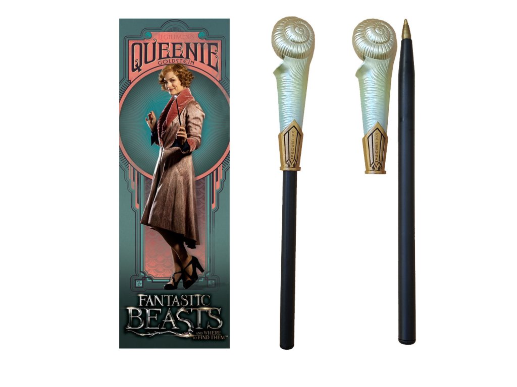Propiska ve tvaru hůlky Queenie Goldsteinové, doplněné záložkou s motivem této oblíbené postavy. Pero má modrý inkoust.Doplňkové parametry