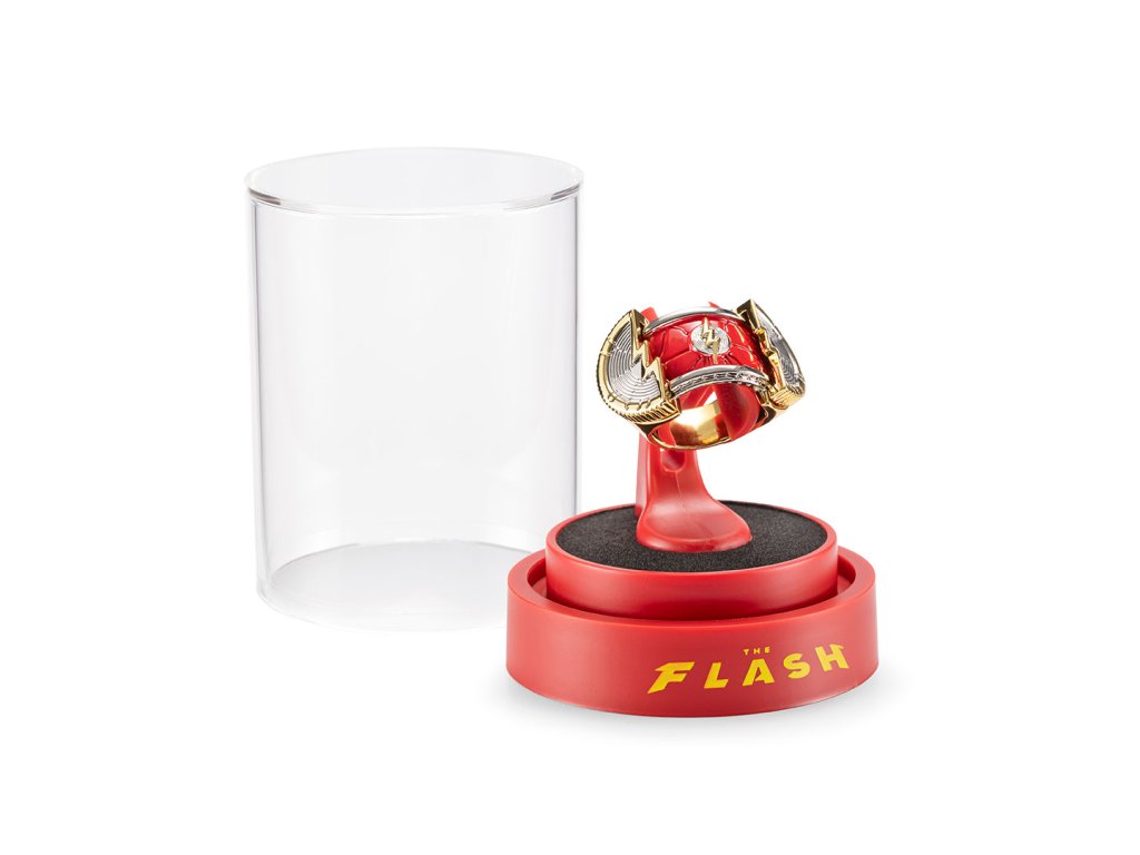 Autentická replika prstenu Barryho Allena z filmu Flash (2023) od DC , která je doplněna vitrínou a měří přibližně 9,5 cm na výšku. Prsten, jak je vidět ve filmu, není jen doplňkem, ale obsahuje verzi Barryho obleku, která mu umožňuje bleskově se obléknout do Flashova kostýmu.Doplňkové parametry