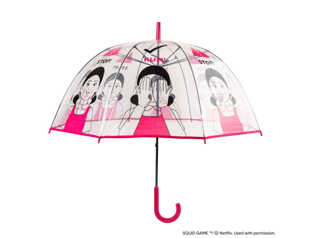 Tento jedinečný průhledný deštník Red Light, Green Light tě ochrání před deštěm a zároveň umožní 360stupňový výhled, abys mohl obdivovat oblohu i za deště. Kopule deštníku zobrazuje oči Young-Hee.