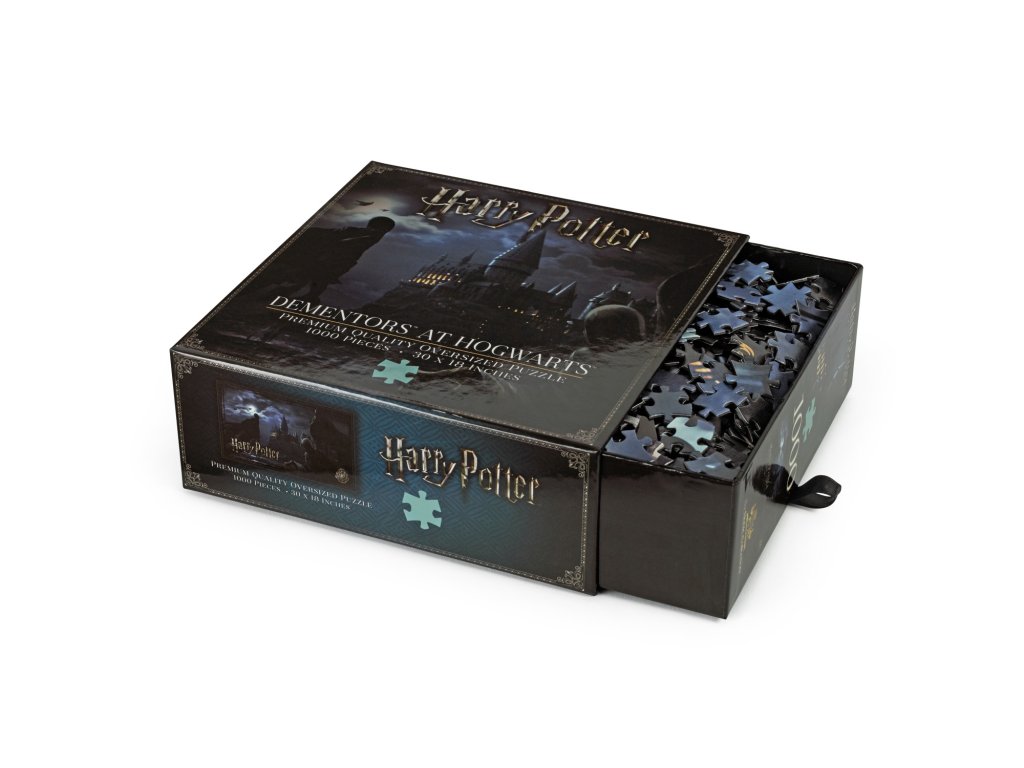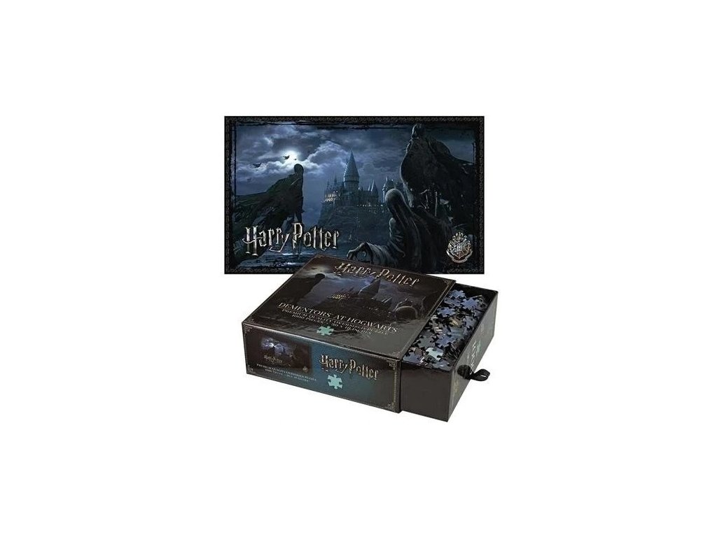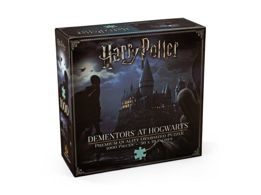 Mozkomor je jedna z nejděsivějších magických postav kouzelnického světa. Živí se totiž šťastnými pocity a vzpomínkami, které vysává z lidí. Nemluvě o jeho polibku, což je jeho nejnebezpečnější vlastnost. Ve světě Harryho Pottera se tento strážce Azkabanu poprvé představil ve třetím díle, což znázorňují i tyto tematické puzzle, které zachycují Mozkomory, jak hlídají Bradavice před domnělým vrahem Siriusem Blackem.