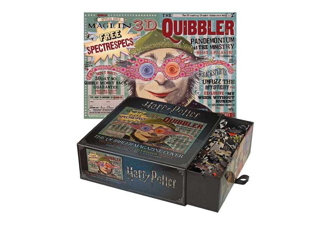 Puzzle o 1000 dílcích s motivem obálky časopisu The Quibbler, který vydává Xenofilius Láskorád. Rozměry po sestavení jsou 71 x 48 cm. Rozměr balení: 20 x 20 x 7,5 cm.Doplňkové parametry