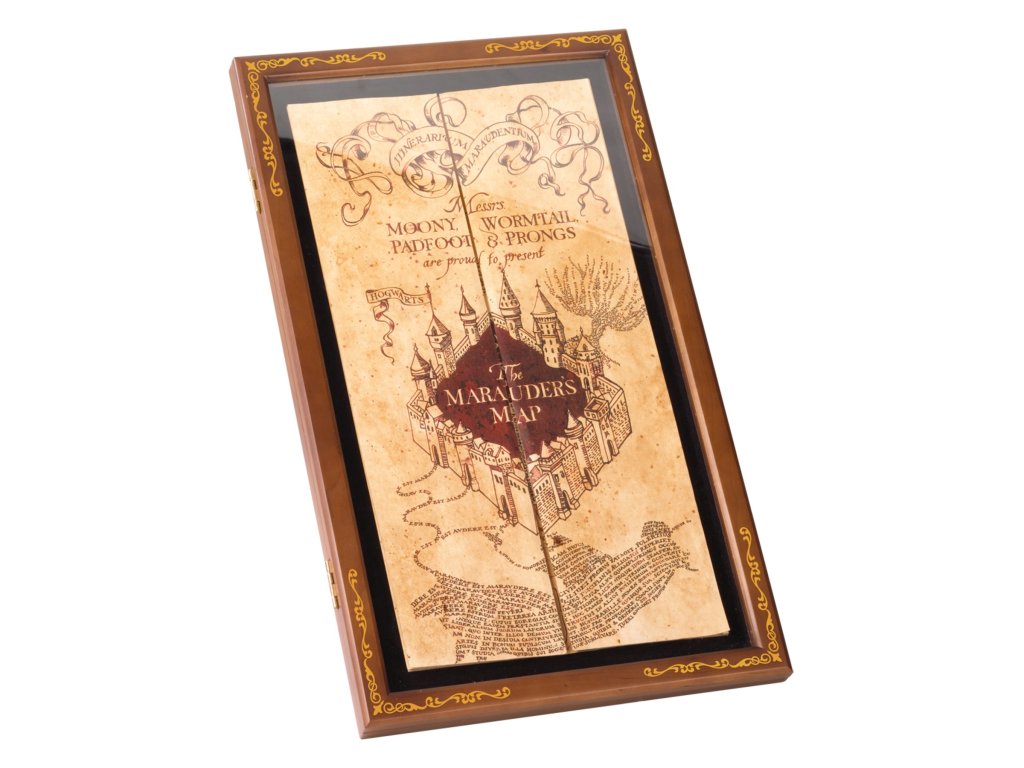 Dřevěný rámeček (vitrína) pro legendární Pobertův plánek, zdobená zlatými ornamenty a s otevíracím víkem na pantech.