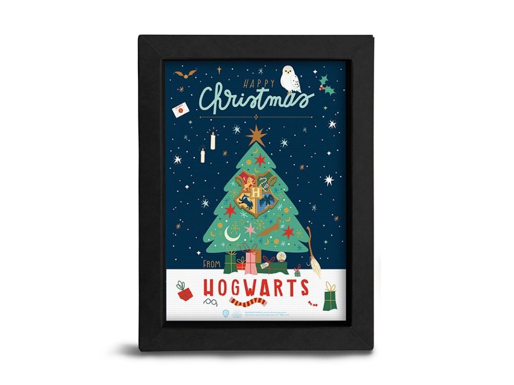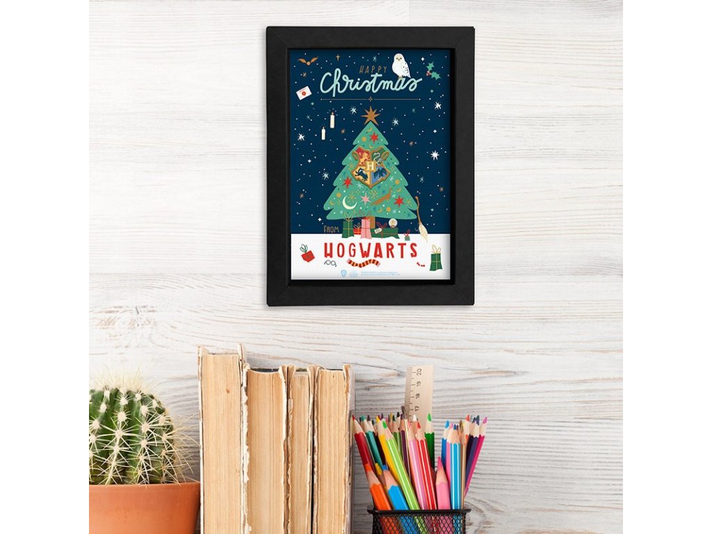 Ponořte se do vánoční atmosféry stejně jako Harry a jeho přátelé s tímto nádherným rámem a fotkou vánočního stromečku v Bradavicích.