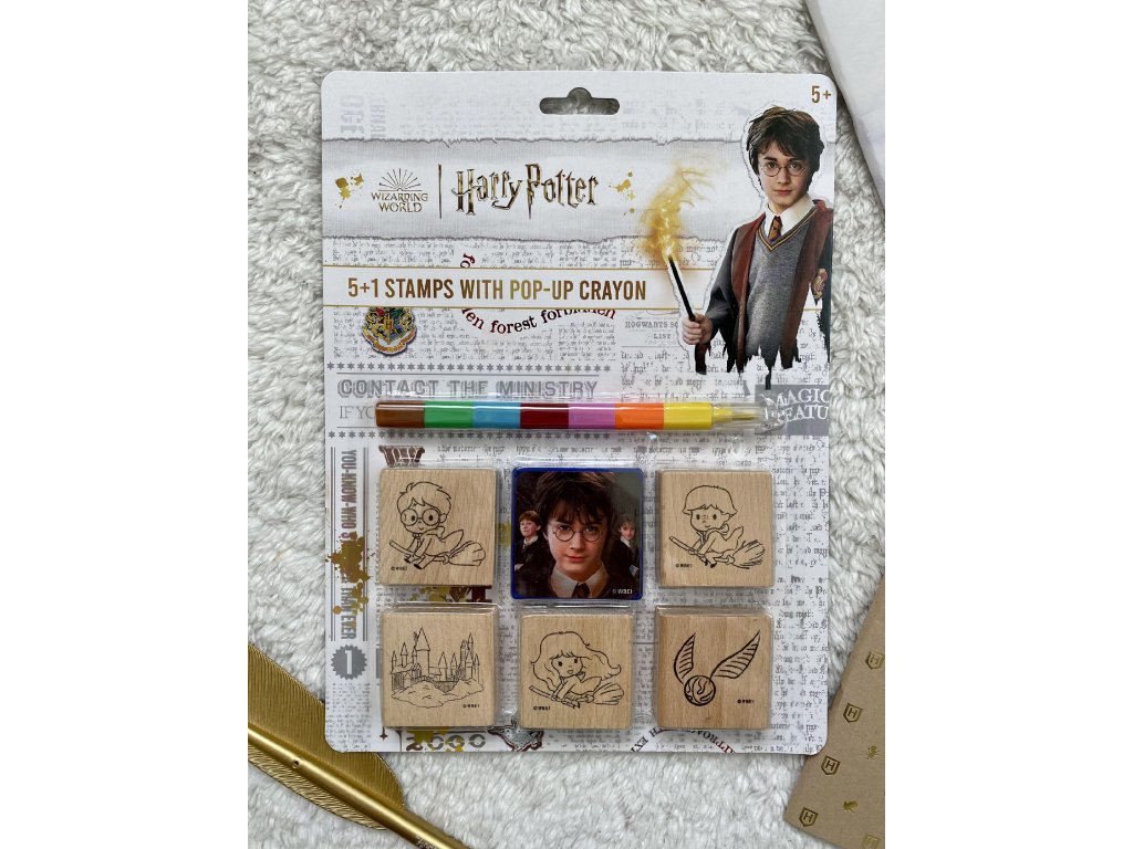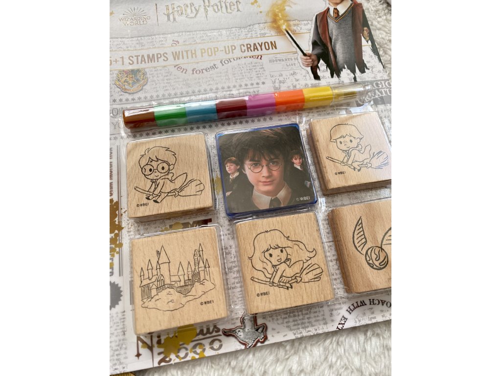 Balení obsahuje 5 snadno uchopitelných dřevěných razítek, barevnou podušku a sedmibarevnou skládací voskovku. To vše v motivech oblíbené ságy o Harrym Potterovi.