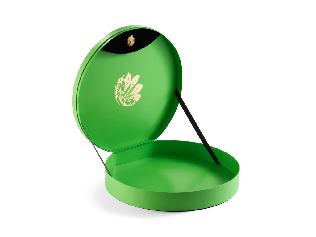 Klobouk je uložen v zelené sběratelské kloboukové krabici a součástí balení je také replika zlatého odznaku Shiz (Shiz Pin) o velikosti přibližně 2,5 cm.