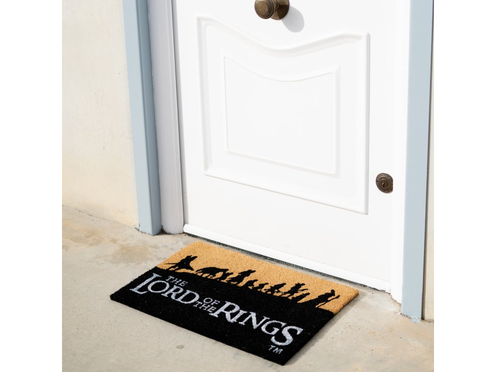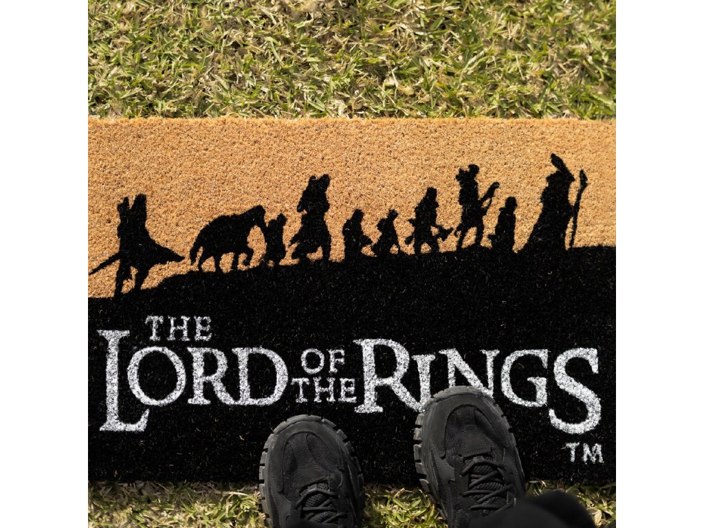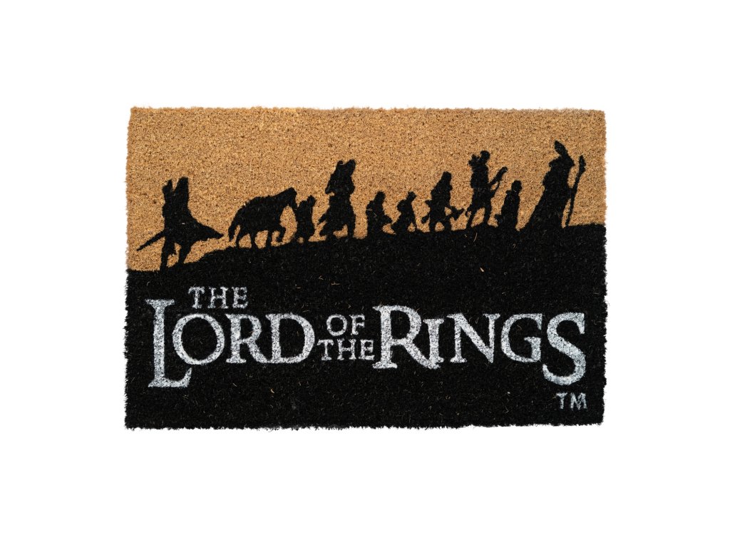 Přivítejte své hosty ve stylu Středozemě s touto originální rohožkou s motivem Společenstva prstenu z legendární trilogie Pán prstenů. Vyrobena z přírodního kokosového vlákna, které spolehlivě zachytí nečistoty, a opatřena protiskluzovým PVC podkladem pro bezpečné používání. Design zobrazuje siluety devíti členů Společenstva na jejich cestě za zničením Jednoho prstenu.