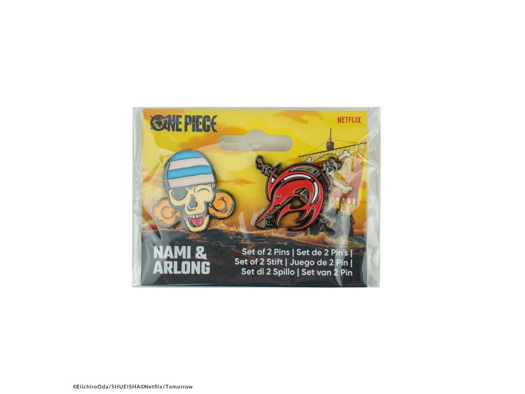 Tato exkluzivní sada obsahuje dva detailně zpracované smaltované odznaky. Odznak Nami zobrazuje její oranžové vlasy s modrobílým pruhovaným šátkem a výraz odpovídající její hravé povaze. Odznak Arlongu nese děsivé logo pirátské posádky Arlong Pirates.