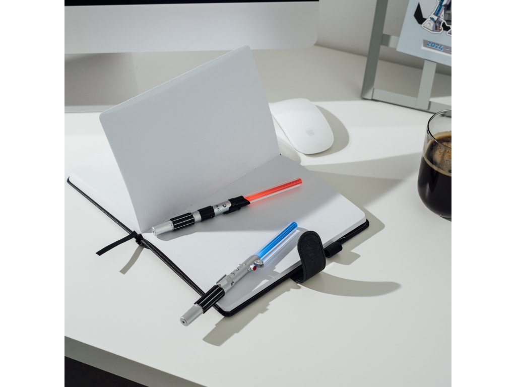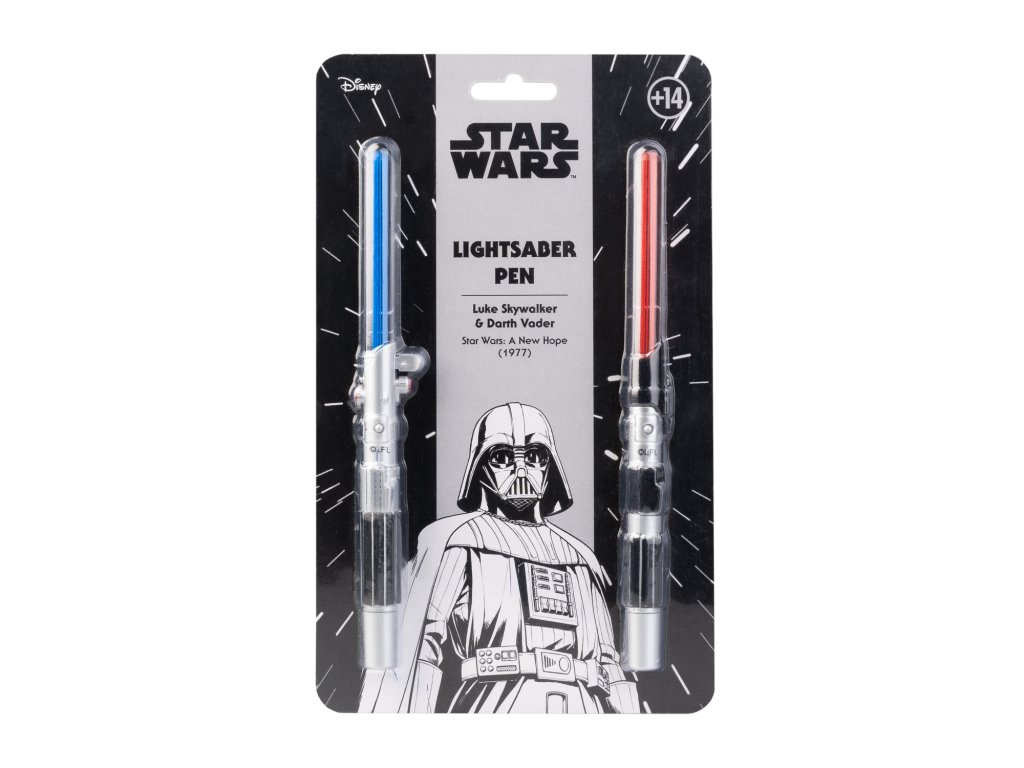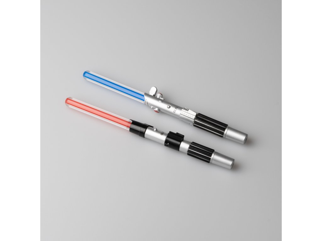 Sada per, která replikují dva nejikoničtější světelné meče z této série. Jsou vyrobena z ABS plastu, mají černý inkoust a zacvakávací víčko. Obsahují tlačítko, které aktivuje vnitřní LED světlo v červené barvě pro světelný meč Dartha Vadera a modré pro světelný meč Luka Skywalkera. Funguje se 3 bateriemi AG3 1,5V (jsou součástí balení). Přibližné rozměry: 18 x 1,8 x 1,2 cm.Doplňkové parametry