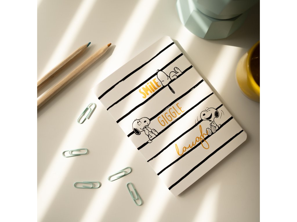 Balení sešitů A6 se Snoopym z kolekce Lazy days. Obsahuje 3 sešity s různými designy. Vyrobeno s potištěným papírovým obalem. Uvnitř linkovaný papír. Každý sešit měří 10,5 x 14,8 cm. Oficiální produkt Peanuts.Doplňkové parametry