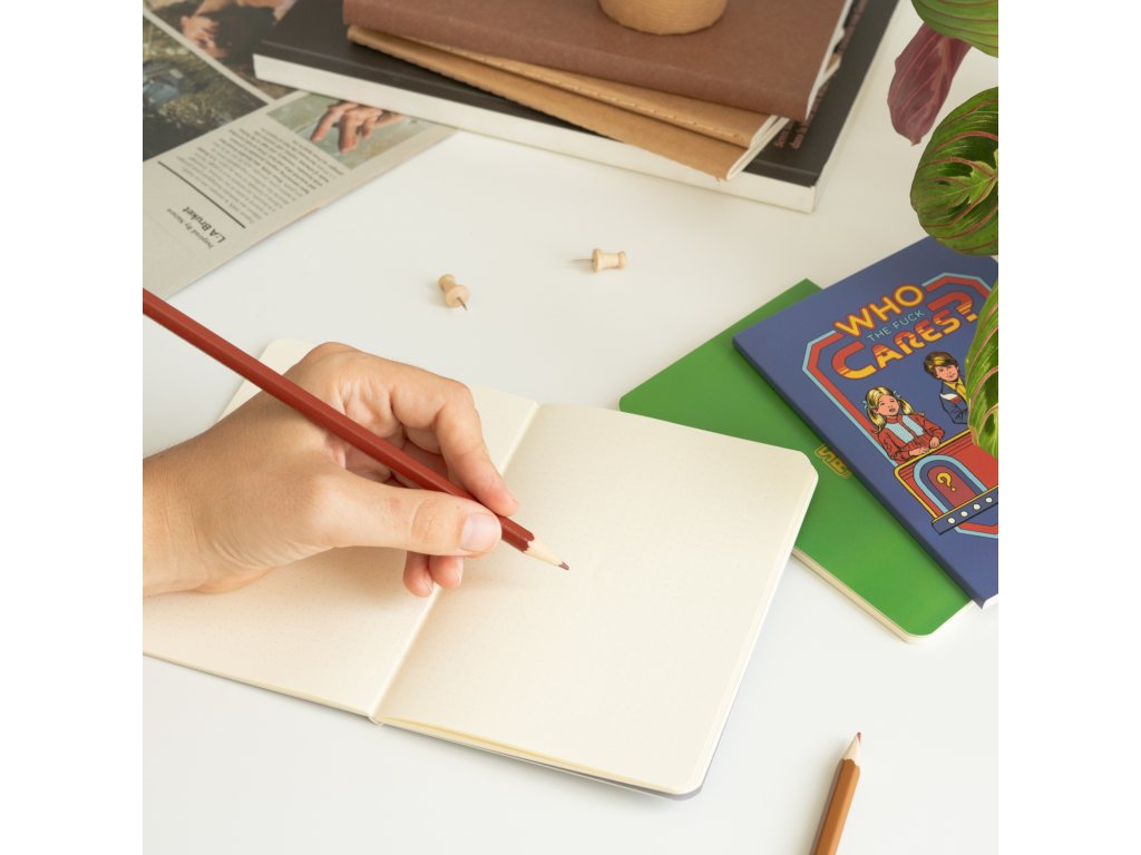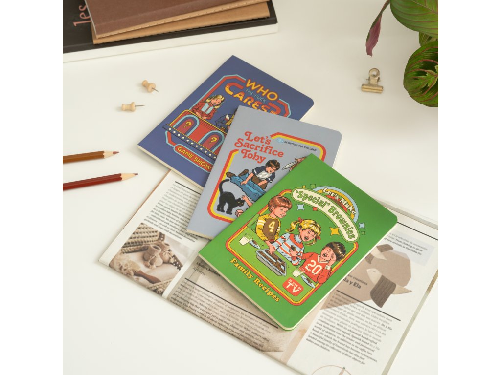 Balení 3 měkkých vázaných sešitů formátu A6 se třemi různými designy. Každý sešit má rozměry 10,5 x 14,8 cm a je vyroben z potištěného papíru s gramáží 300 g/m² na vnější straně a gramáží 80 g/m² uvnitř. Každý sešit má 32 listů (64 stran) a jeden typ vnitřní strany: linkovaný, odrážkový a bílý.Doplňkové parametry