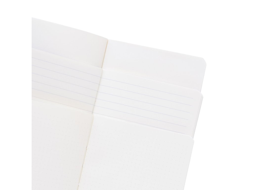 Balení 3 sešitů A6 s měkkou vazbou ve třech různých designech. Každý sešit má rozměry 10,5 x 14,8 cm a je vyroben z potištěného papíru s gramáží 300 g/m² na vnější straně a 80 g/m² na vnitřní straně. Každý sešit má 32 listů (64 stran) a jeden typ vnitřku: linkovaný, odrážkový a prázdný.Doplňkové parametry