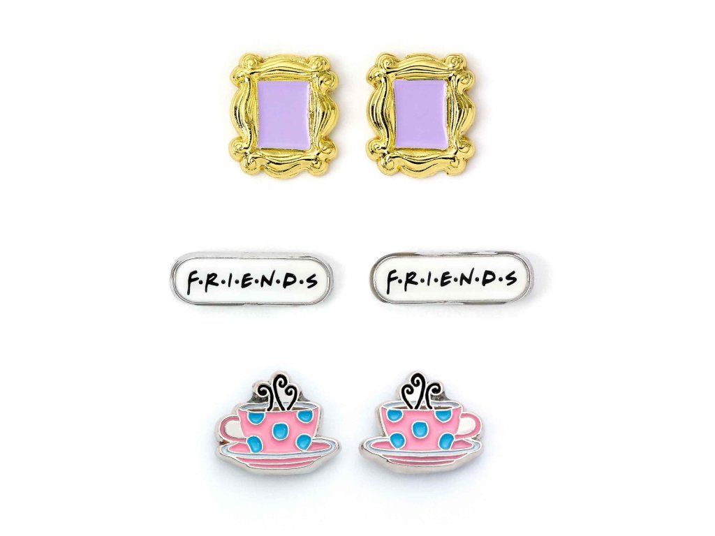 Zažijte nostalgii seriálu Přátelé s touto stylovou sadou tří náušnic! Vyberte si z ikonického rámečku, který obklopuje Moničino kukátko, klasického hrnku na kávu nebo oblíbeného loga Friends. Tato oficiální kolekce náušnic je ideální pro všechny fanoušky seriálu a je bezpečná pro děti od 14 let. Neobsahuje zinek, kadmium ani nikl!Buďte první, kdo napíše příspěvek k této položce.