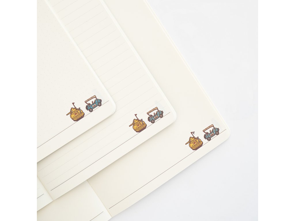 Balení 3 sešitů A5 s měkkou vazbou ve třech různých designech. Každý sešit má rozměry 14,8 x 21 cm a je vyroben z potištěného papíru s gramáží 300 g/m² na vnější straně a 80 g/m² na vnitřní straně. Každý sešit má 32 listů (64 stran) a jeden typ vnitřku: linkovaný, odrážkový a prázdný.Doplňkové parametry