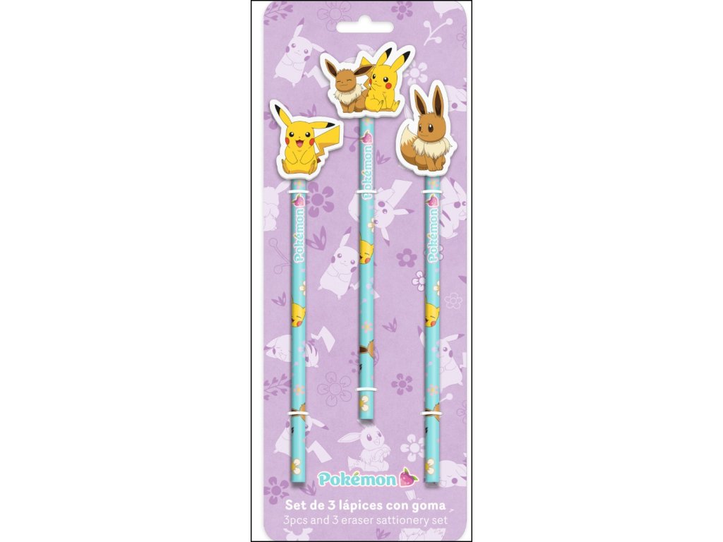 Sada 3 tužek s gumou Flowers, Pokémon