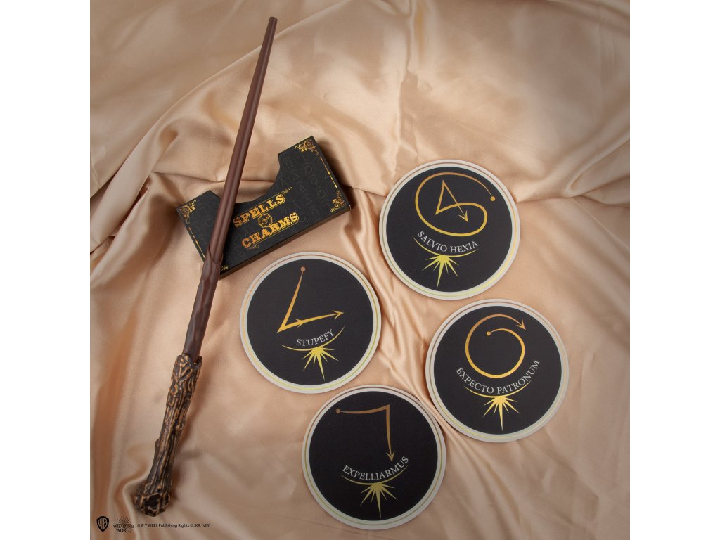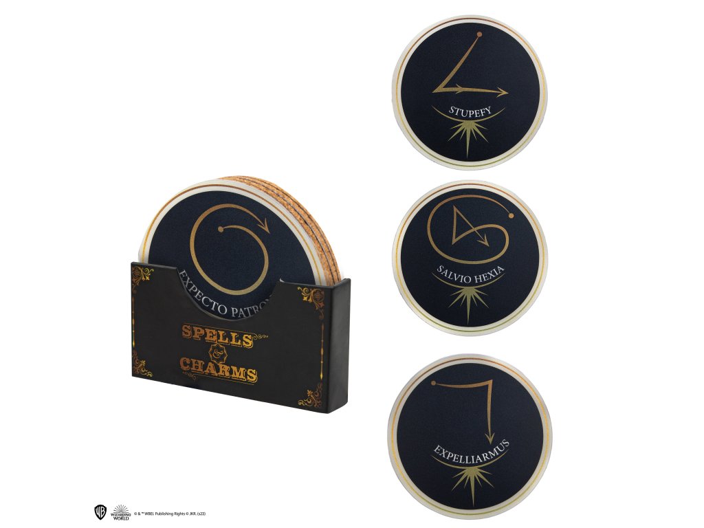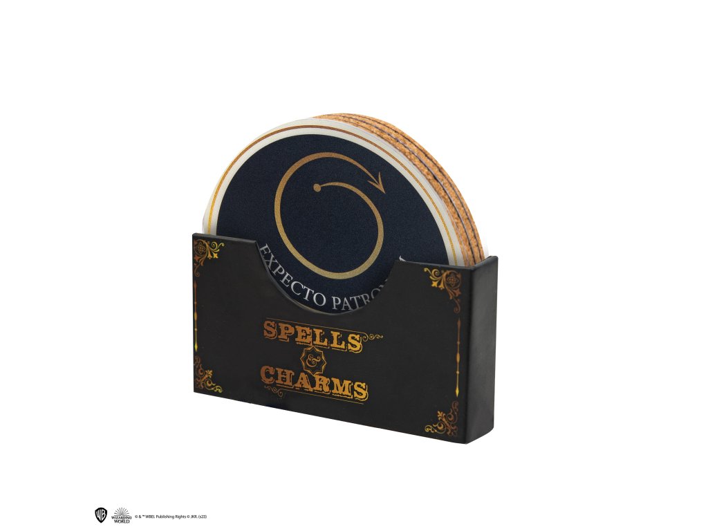 Tato sada podtácků obsahuje čtyři jedinečné vzory, z nichž každý představuje jiné kouzlo nebo zaklínadlo, včetně "Expecto Patronum", "Expelliarmus", "Stupefy" a "Salvio Hexia". Tyto podtácky jsou navrženy tak, aby chránily povrch před nevzhlednými kruhy od vody a škrábanci. Každý podtácek má krásný, složitý design inspirovaný kouzly a zaklínadly z Kouzelnického světa Harryho Pottera. Ideální dárek pro každého fanouška Harryho Pottera.