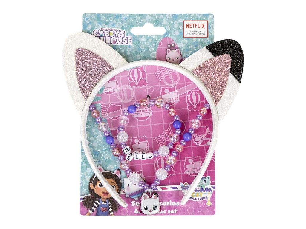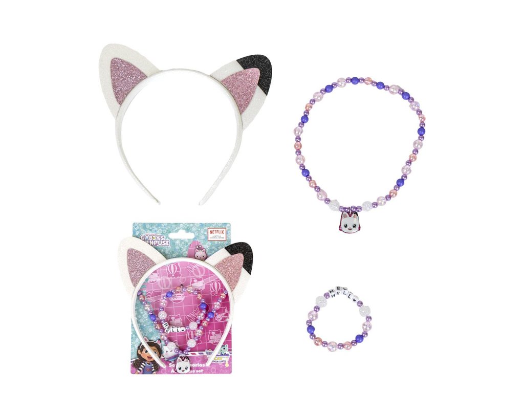Roztomilá sada inspirovaná Gábininým kouzelným domkem obsahuje čelenku s oušky, náhrdelník a náramek. Ideální pro malé parádnice a fanoušky seriálu. Sada je perfektní na hraní, oslavy i běžné nošení.Doplňkové parametry