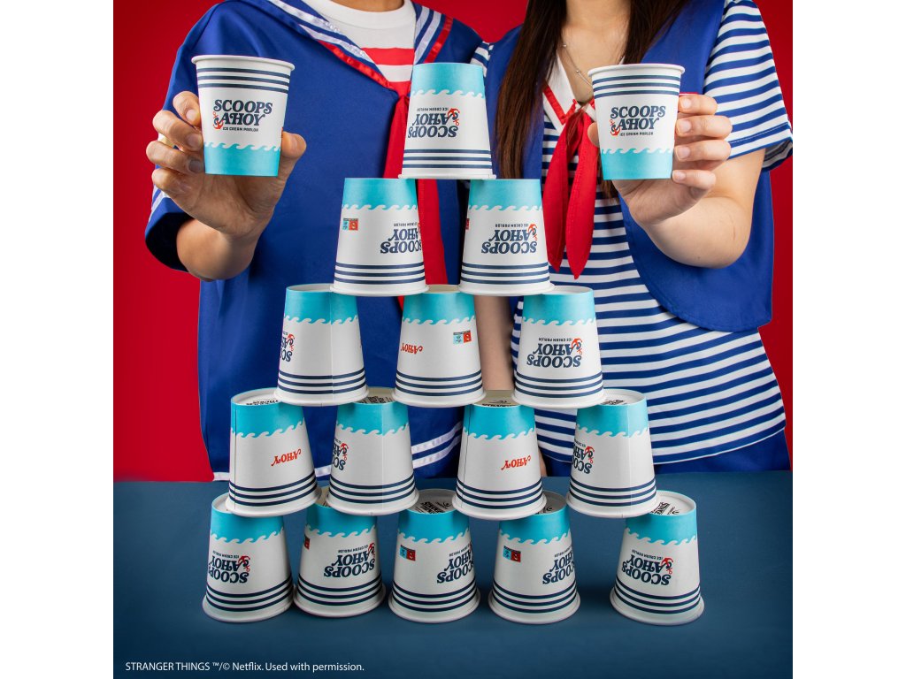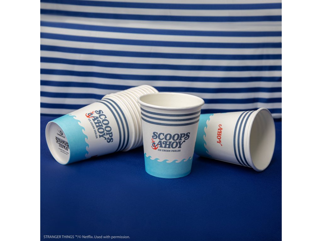 Ponořte se do světa Stranger Things s naší 24dílnou sadou papírových kelímků Scoops Ahoy. Tyto všestranné kelímky, které jsou ideální pro servírování zmrzliny, vody nebo jiných pochoutek, zachycují podstatu historické zmrzlinárny ze seriálu Stranger Things.