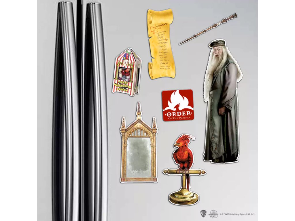 Balení obsahuje 7 ks pěnových magnetek s motivem Albuse Brumbála a předmětů s ním úzce spojených.