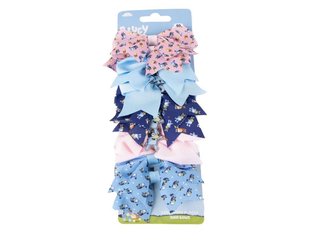 Krásná dětská sada pěti mašlí do vlasů s motivem Bluey, navržená pro malé fanoušky oblíbené postavy. Ideální doplněk k účesu i outfitu.