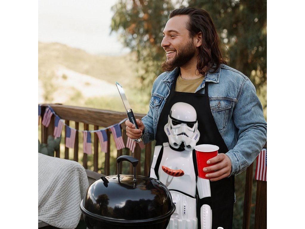 Originální sada na grilování Stormtrooper z Hvězdných válek – galaktické grilování jako profesionál. S touto 4dílnou sadou se každá grilovací párty stane intergalaktickou událostí. Vybaveni praktickým nářadím a poutavou zástěrou s motivem Stormtroopera jste dobře připraveni na grilování na zahradě, na balkóně nebo kdekoli jinde v galaxii. Sada obsahuje: grilovací zástěru, grilovací kleště, grilovací vidličku, grilovací špachtli. Ideální dárek pro fanoušky Star Wars a milovníky grilování - kombinuje zábavu, funkčnost a styl daleké galaxie. Připravte se na svou další kulinářskou misi pod širým nebem.