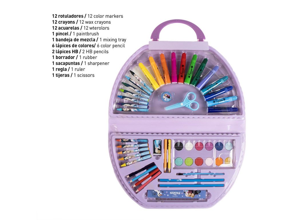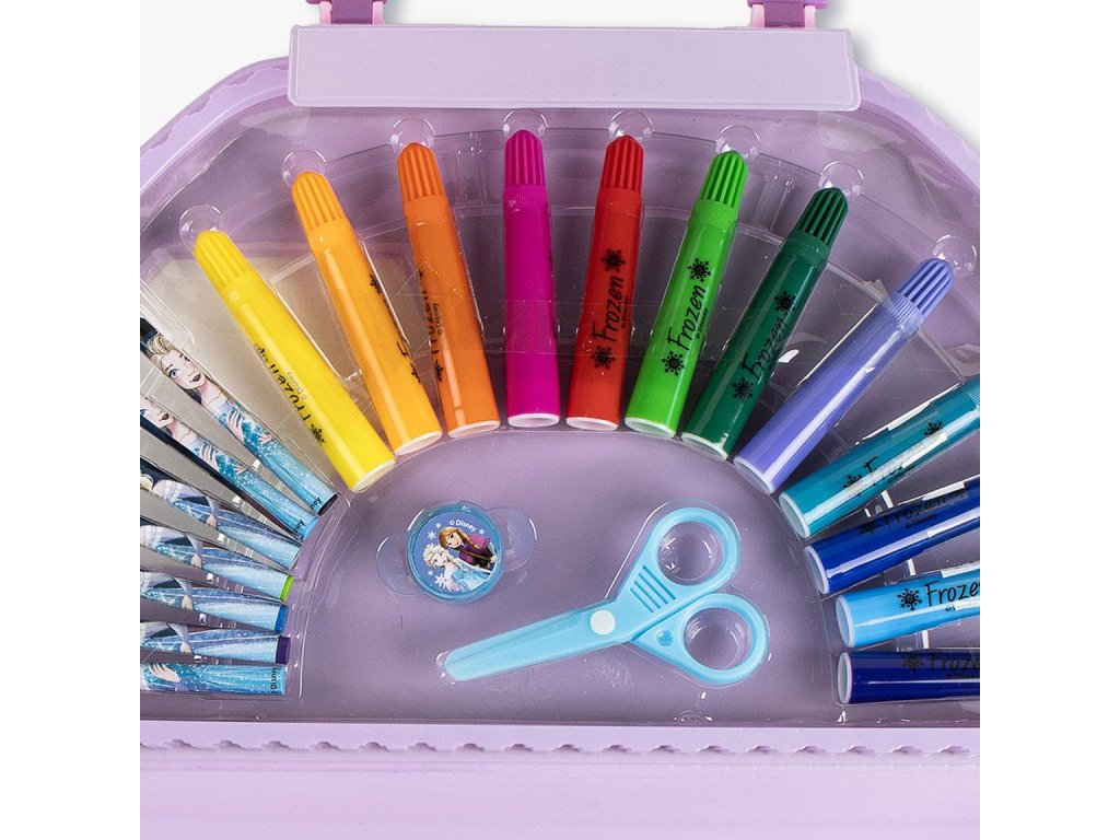 Kancelářská sada s motivem Frozen obsahuje 50 kusů doplňků pro psaní, kreslení a tvoření. Barevný design s Elsou a Annou potěší všechny malé fanoušky Ledového království a promění každý školní den v kouzelný zážitek.