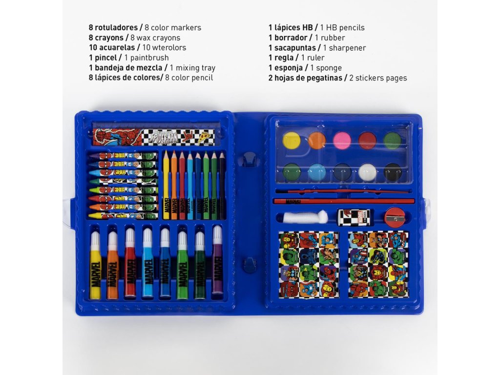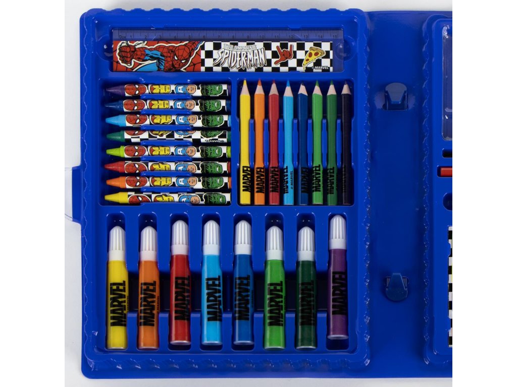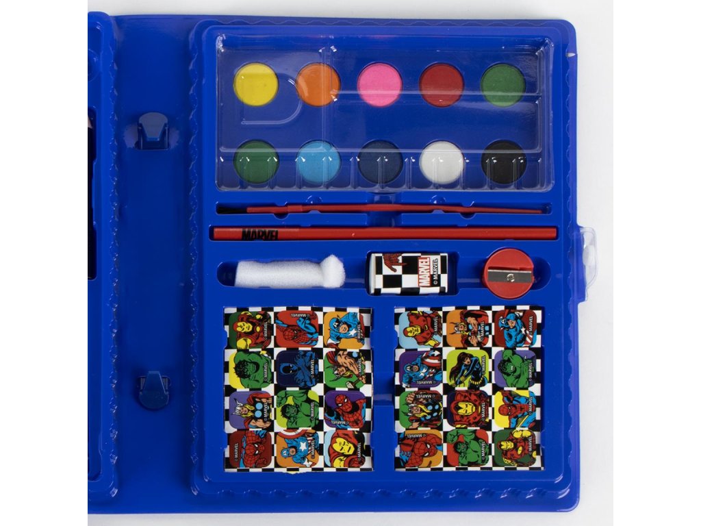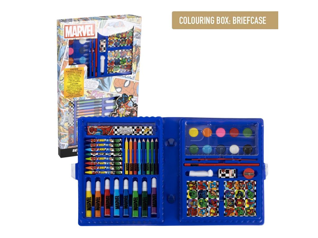 Sada na kreslení v kufříku s motivem Avengers obsahuje různé potřeby pro kreslení a tvoření, přehledně uložené v praktickém kufříku pro snadné přenášení. Design s oblíbenými superhrdiny zaujme fanoušky Marvelu.Doplňkové parametry