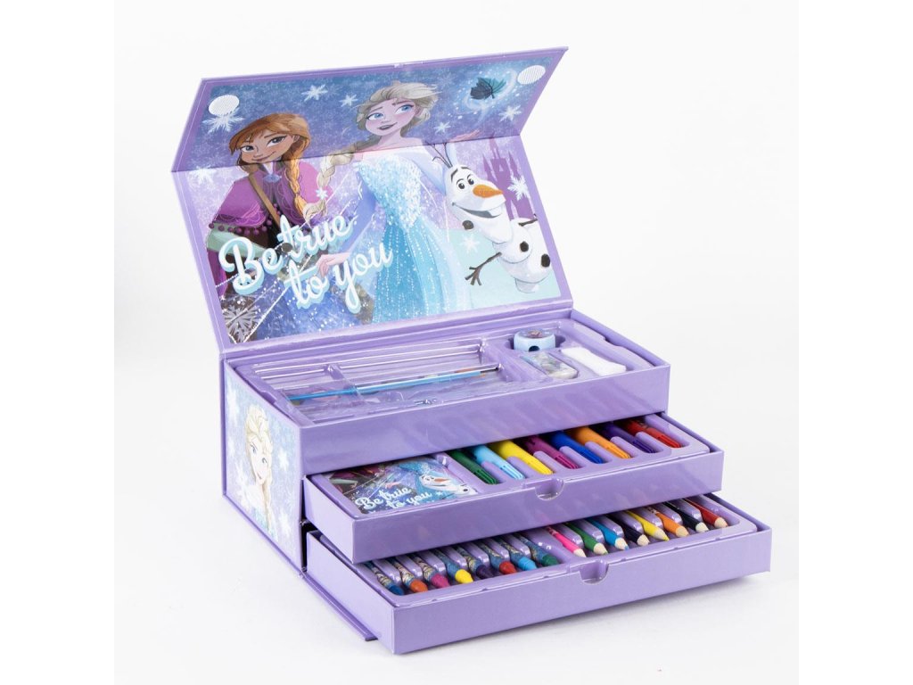 Sada na kreslení v kufříku s motivem Frozen obsahuje vše potřebné pro kreslení a tvoření na cestách i doma. Praktický kufřík usnadňuje přenášení a uchovávání potřeb, zatímco design s oblíbenou postavičkou zaujme fanoušky.Doplňkové parametry