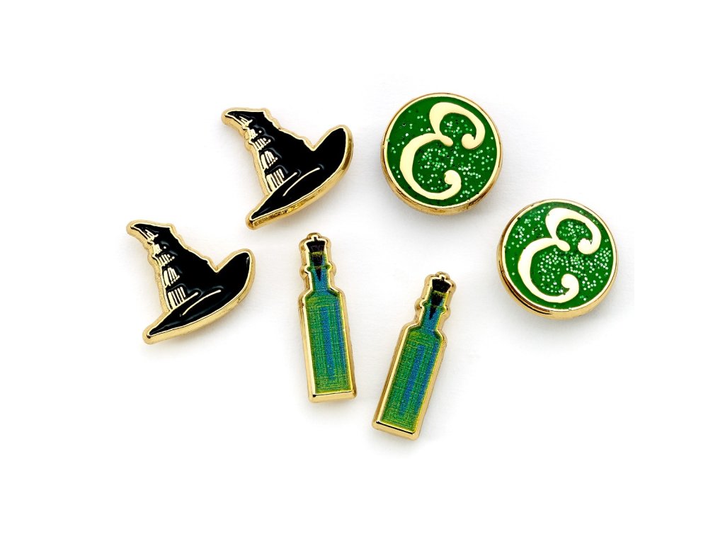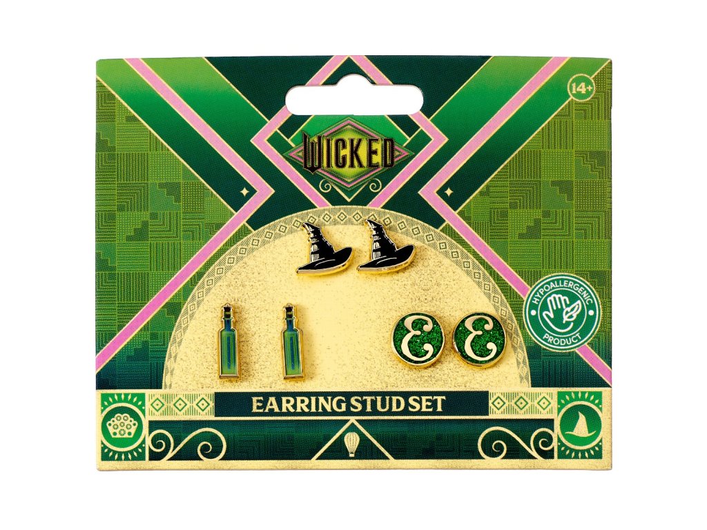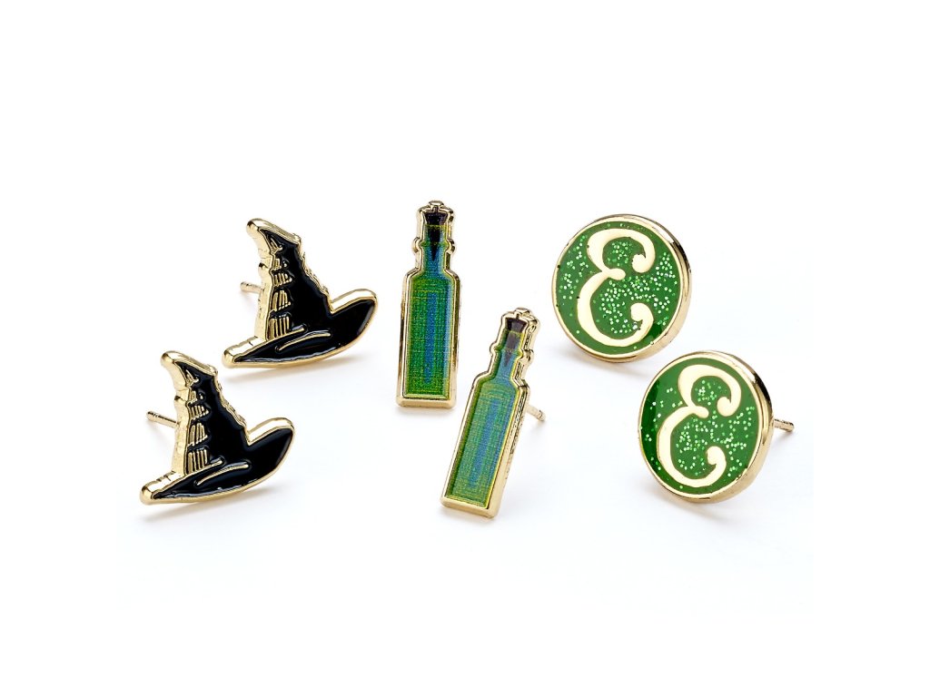 Sada náušnic s kloboukem Wicked, lahvičkou a logem 'E', Wicked