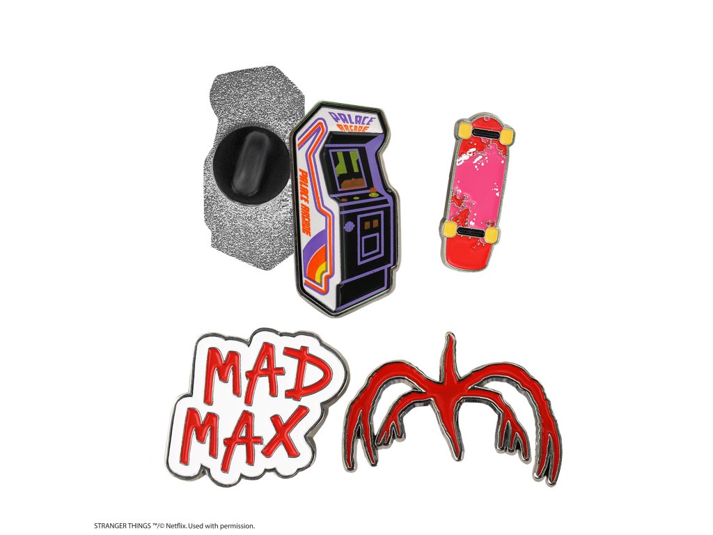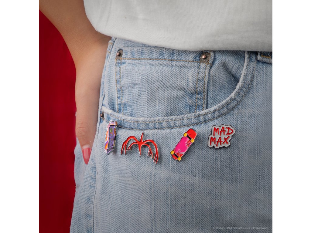 V sadě odznaků pro 2. sezónu je skateboard, arkáda Palace, Mad Max a Mind Flayer. Vyjádřete svůj obdiv k seriálu Stranger Things připevněním tohoto odznaku na batoh, bundu nebo jiné oblečení.