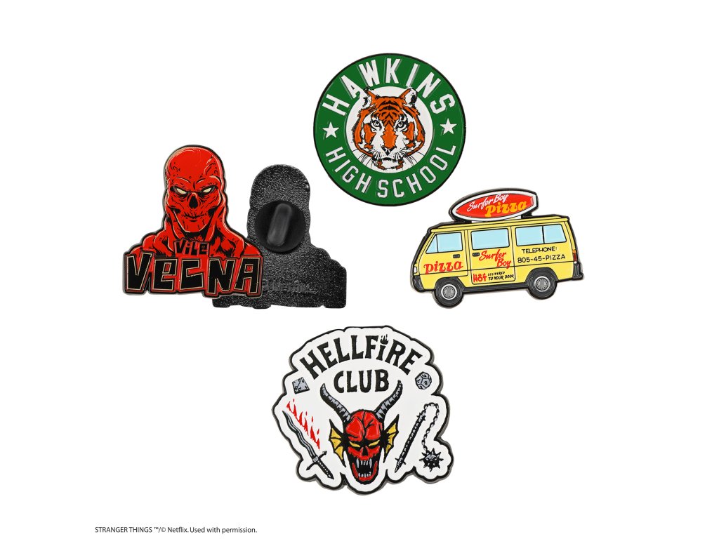 Sada odznaků 4. série Stranger Things doplňují odznaky Hellfire Club, Vile Vecna, Hawkins High School a Pizzamobile. Nekonečný boj mezi světlem a tmou se odráží v každém symbolu a postavě této kolekce.