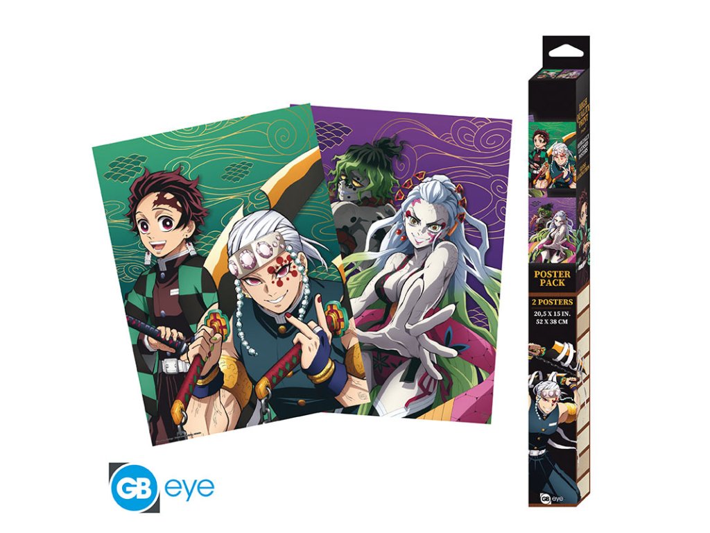Sada plakátů Tanjiro, Tengen, Daki a Gyutaro, Demon Slayer