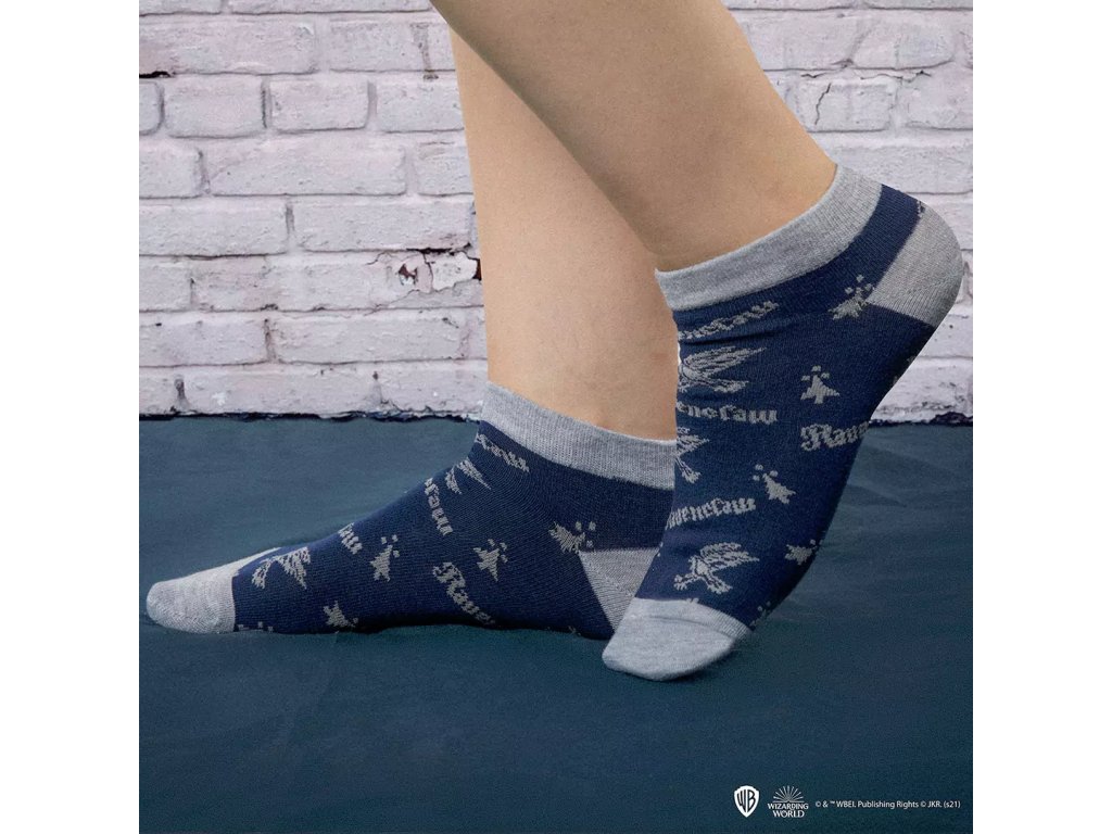 Sada obsahuje 3 páry ponožek s motivem koleje Havraspár (Ravenclaw).