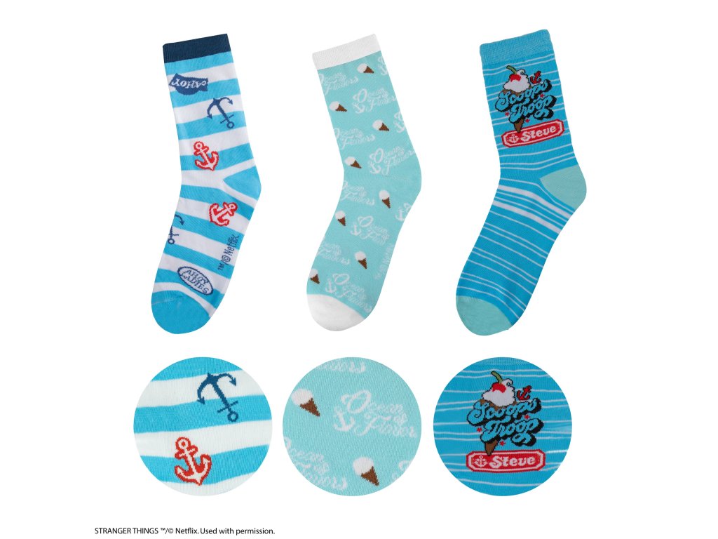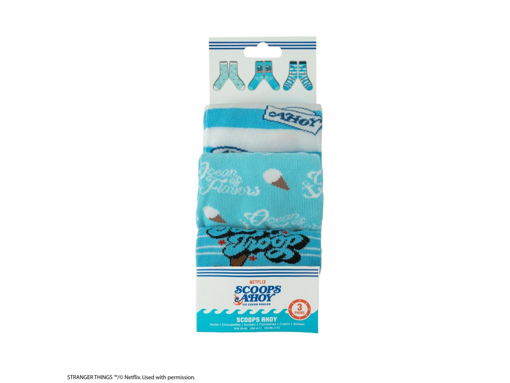 Vydejte se na dobrodružství s naší exkluzivní sadou tří párů ponožek Scoops Ahoy, které vám zpříjemní každý den. Každý pár z této kolekce s ikonickým modrým designem vzdává hold legendárnímu emblému Scoops Ahoy, což je nezbytnost pro každého fanouška. Tyto vysoké ponožky se stanou vaším dokonalým společníkem – ať už relaxujete v pohodlí domova nebo se vydáváte na nezapomenutelná dobrodružství. Široká škála velikostí zaručuje perfektní posazení a maximální komfort pro každého nositele.