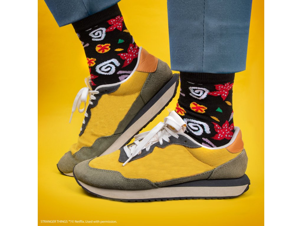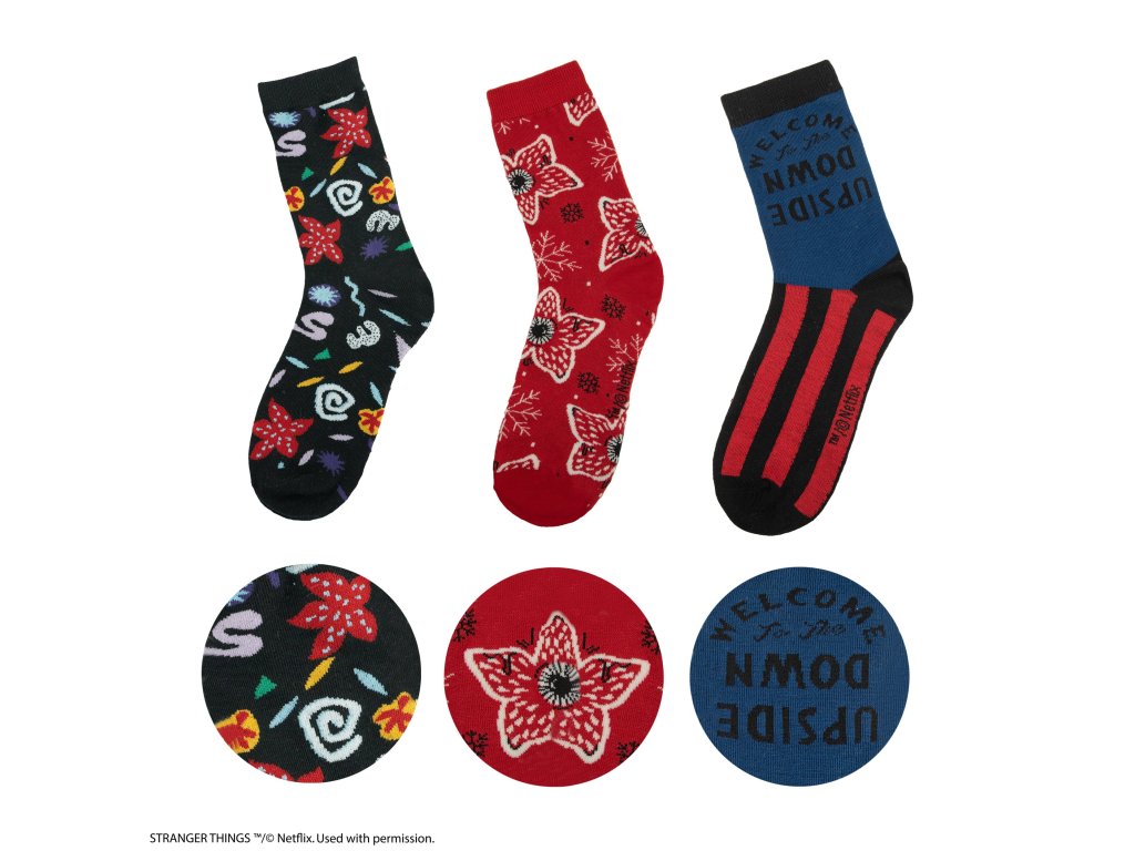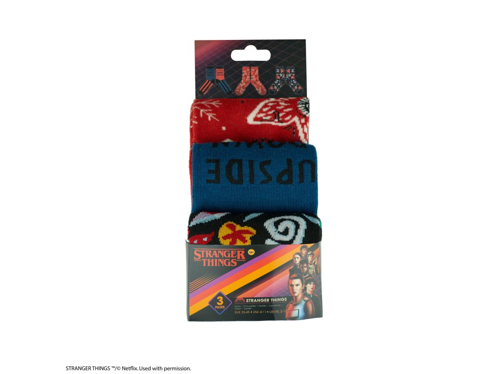 Prozkoumejte temnou stránku s naší sadou tří párů ponožek Stranger Things, ideální pro ty, kdo hledají vzrušení. Tyto vysoké ponožky se stanou vaším dokonalým společníkem – ať už relaxujete v pohodlí domova nebo se vydáváte na nezapomenutelná dobrodružství. Široká škála velikostí zaručuje perfektní posazení a maximální komfort pro každého nositele.