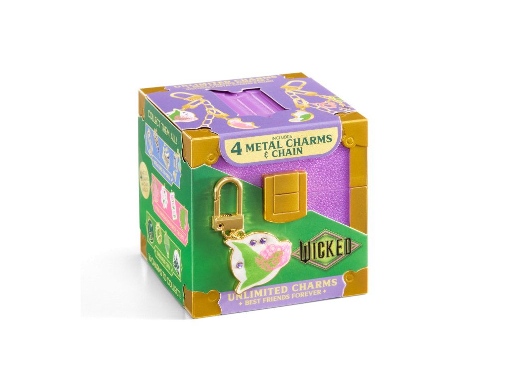 Tento oficiálně licencovaný sběratelský kufřík ze světa Wicked obsahuje 4 kovové přívěsky, inspirované ikonickým poutem mezi Elphabou a Glindou.