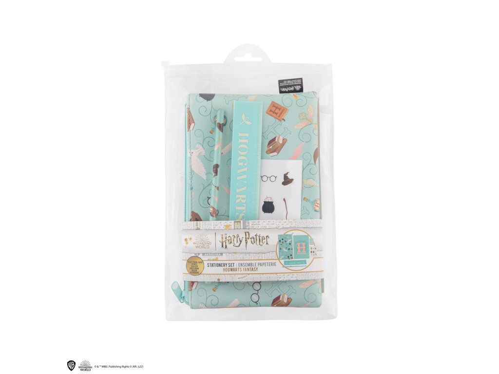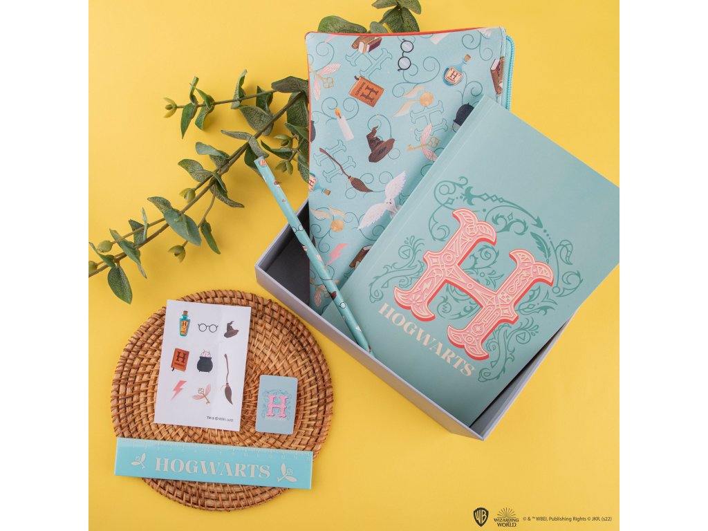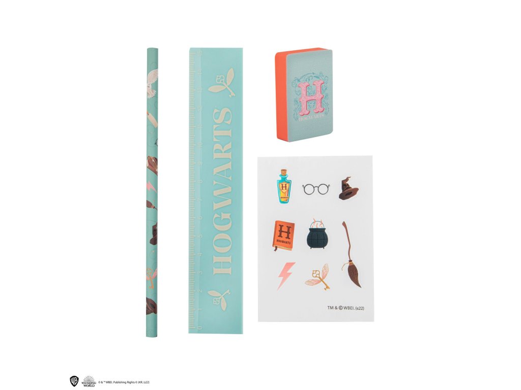 Sada psacích potřeb inspirovaná Bradavicemi je ideální pro všechny, kdo milují kouzelnický svět a psaní. Najdeš v ní luxusní zápisník, tužku, pravítko a gumu. Pro ještě větší zábavu jsou přiloženy samolepky s motivy Bradavic. Tuto kompletní sadu můžeš pohodlně nosit s sebou, abys měl své psací potřeby a trochu kouzel vždy po ruce.