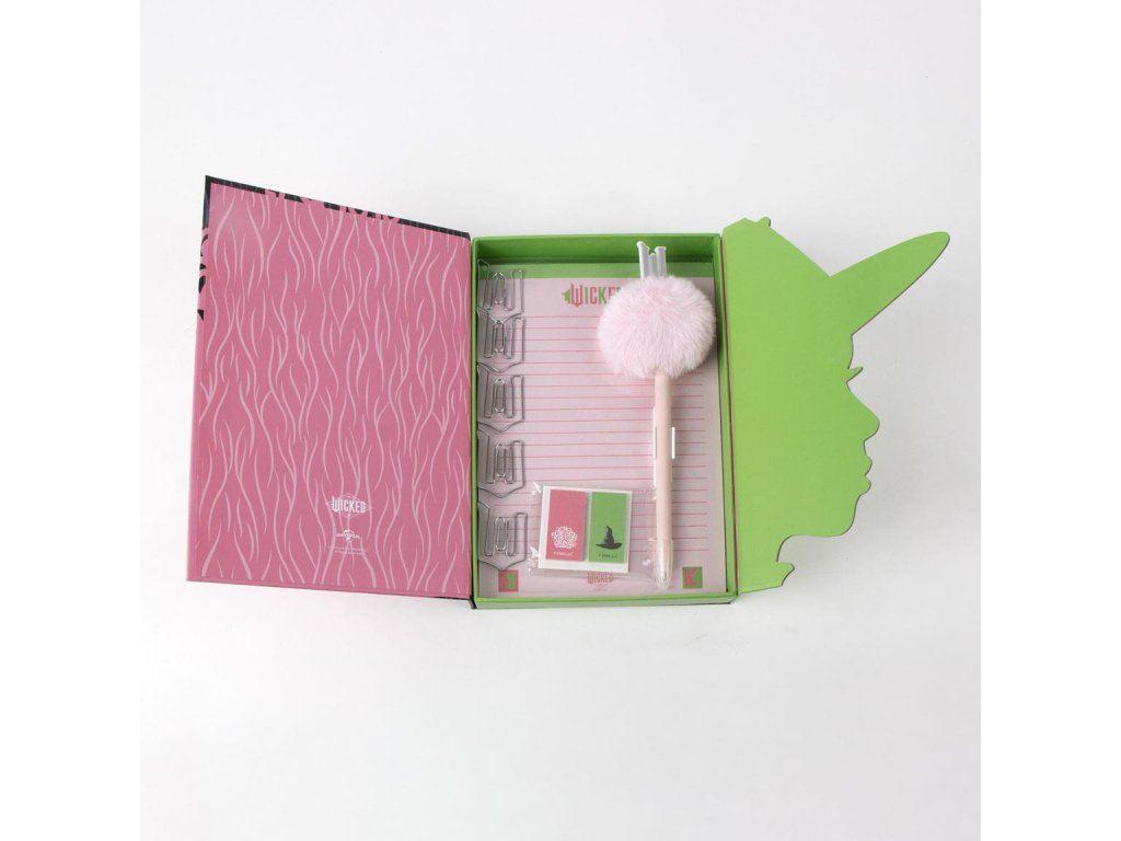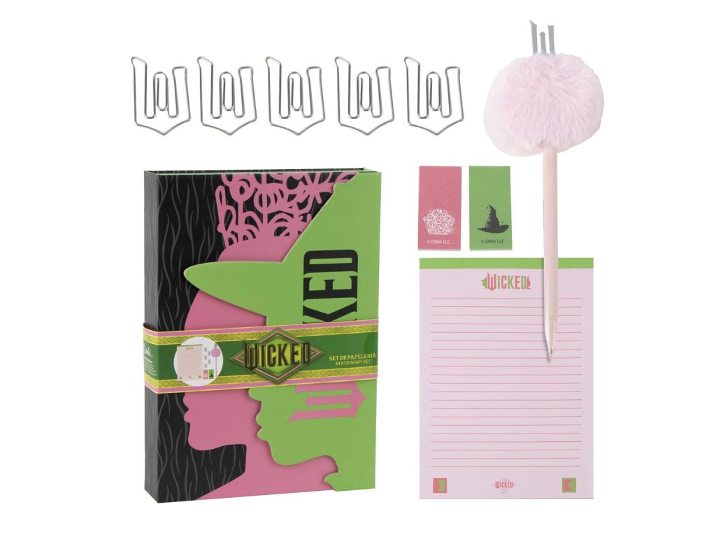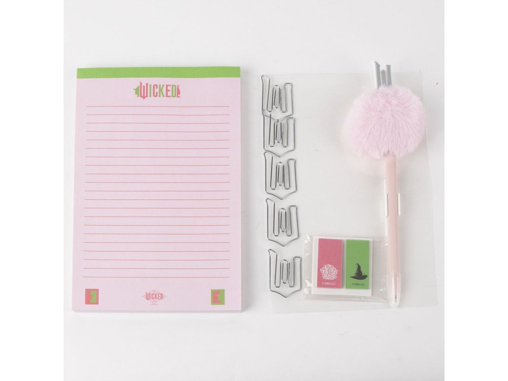 Stylová sada psacích potřeb s motivem Wicked je ideální pro všechny milovníky originální papírenské výbavy. Perfektní do školy, na psaní poznámek nebo kreativní tvoření doma. Obsah sady: 1 x notýsek, 1 x kuličkové pero, 5 x papírové svorky a 2 x lepící papír.Doplňkové parametry