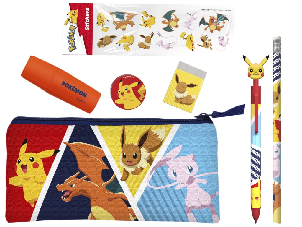 Sada psacích potřeb se samolepkami Pokémon obsahuje propisku, tužku, ořezávátko, gumu, samolepky, zvýrazňovač a barevný penál. Školní sada Pokémon je ideální pro všechny fanoušky této oblíbené hry a seriálu.Doplňkové parametry