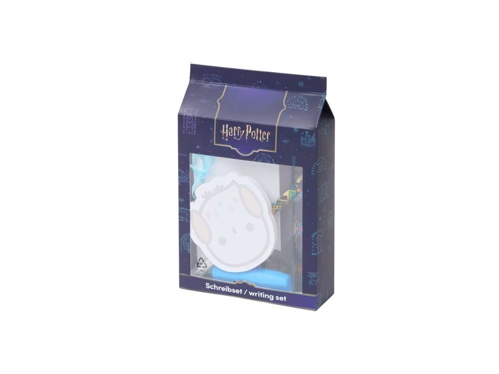 Školní sada s motivem Harry Potter je plná barevných doplňků, jako je poznámkový blok, samolepky a propiska. Vše úhledně uložené v praktické krabičce – připraveno pro každého malého tvůrce.